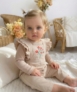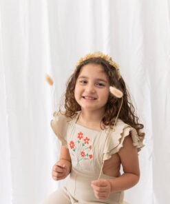 Jumper beige con Margaritas Bordadas es una prenda adorable y funcional para las niñas que aman los detalles coquetos. Confeccionado en bengalina, un tejido de tacto firme y resistente con una ligera elasticidad, este jumper ofrece comodidad y estilo a partes iguales.