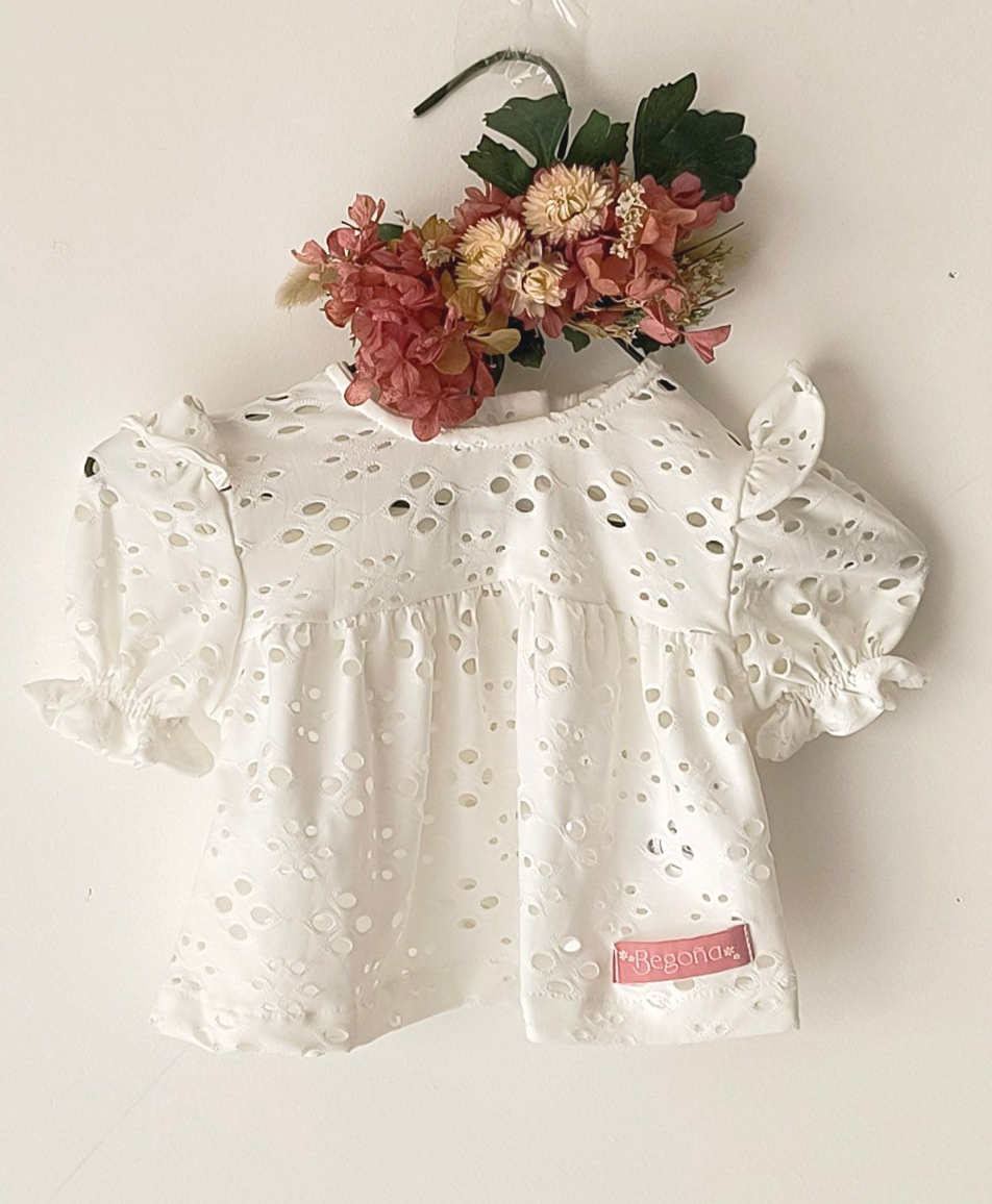 Broderie premium: Diseño con perforaciones regulares (no transparenta en zona pecho).