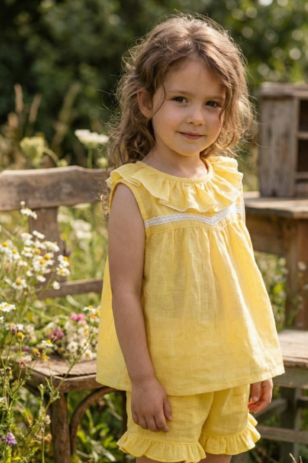 La blusa infantil boho romántica amarilla de Begoña es una pieza creada para las niñas que aman la libertad de movimiento y el encanto natural del estilo artesanal. Confeccionada en una gasa de algodón con poliéster, su textura es ligera, fresca y con una leve transparencia que aporta un toque etéreo y sofisticado.