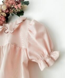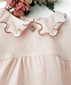 - Detalles únicos: El cuello bebé festoneado y el dije de corazón aportan un toque de elegancia y ternura.