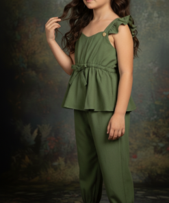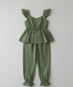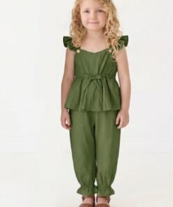 El nuevo enterito verde militar de bengalina de nuestra línea Jumpsuit Alice combina comodidad, diseño y estilo en una prenda única para niñas de 3 meses a 6 años. Confeccionado 100% en bengalina, es suave, resistente y muy cómodo para el uso diario o eventos especiales.