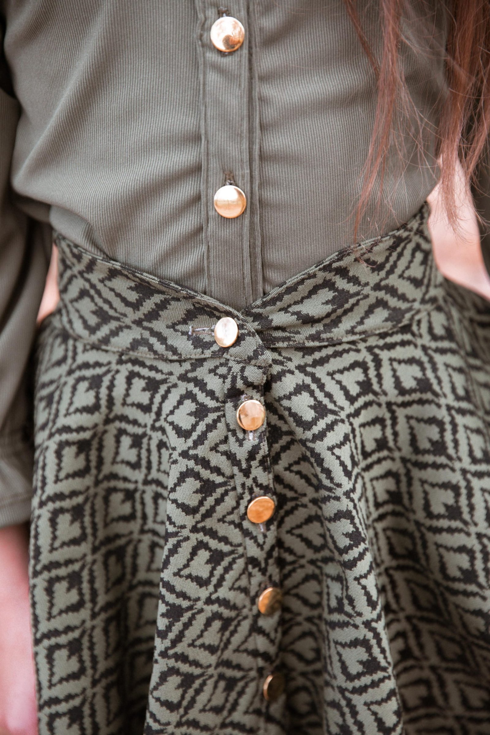 Falda Campana Verde para Niñas | Cintura Alta, Botones Frontales y Corte Circular | Tallas 1-10 Años