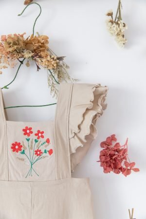 Jumper beige con Margaritas Bordadas es una prenda adorable y funcional para las niñas que aman los detalles coquetos. Confeccionado en bengalina, un tejido de tacto firme y resistente con una ligera elasticidad, este jumper ofrece comodidad y estilo a partes iguales.