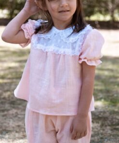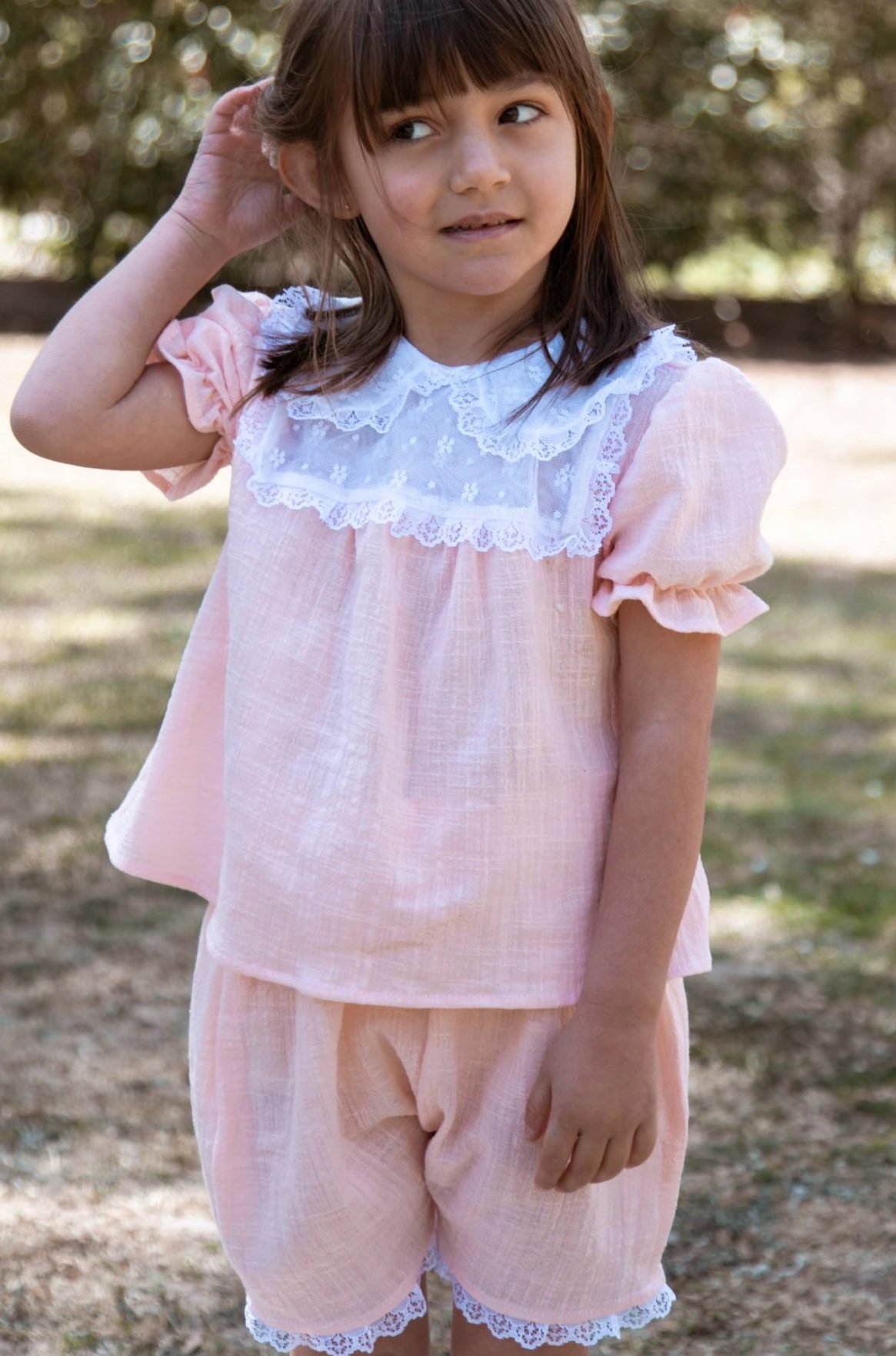 Pantalón corto de gasa con puntilla para niñas | Liviano y delicado – Begoña