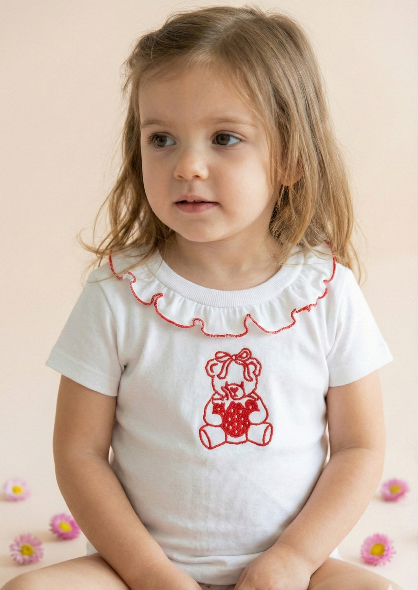 Blusa de broderie elastizado con manga globo para niñas | Diseño con frunces en codo y puño