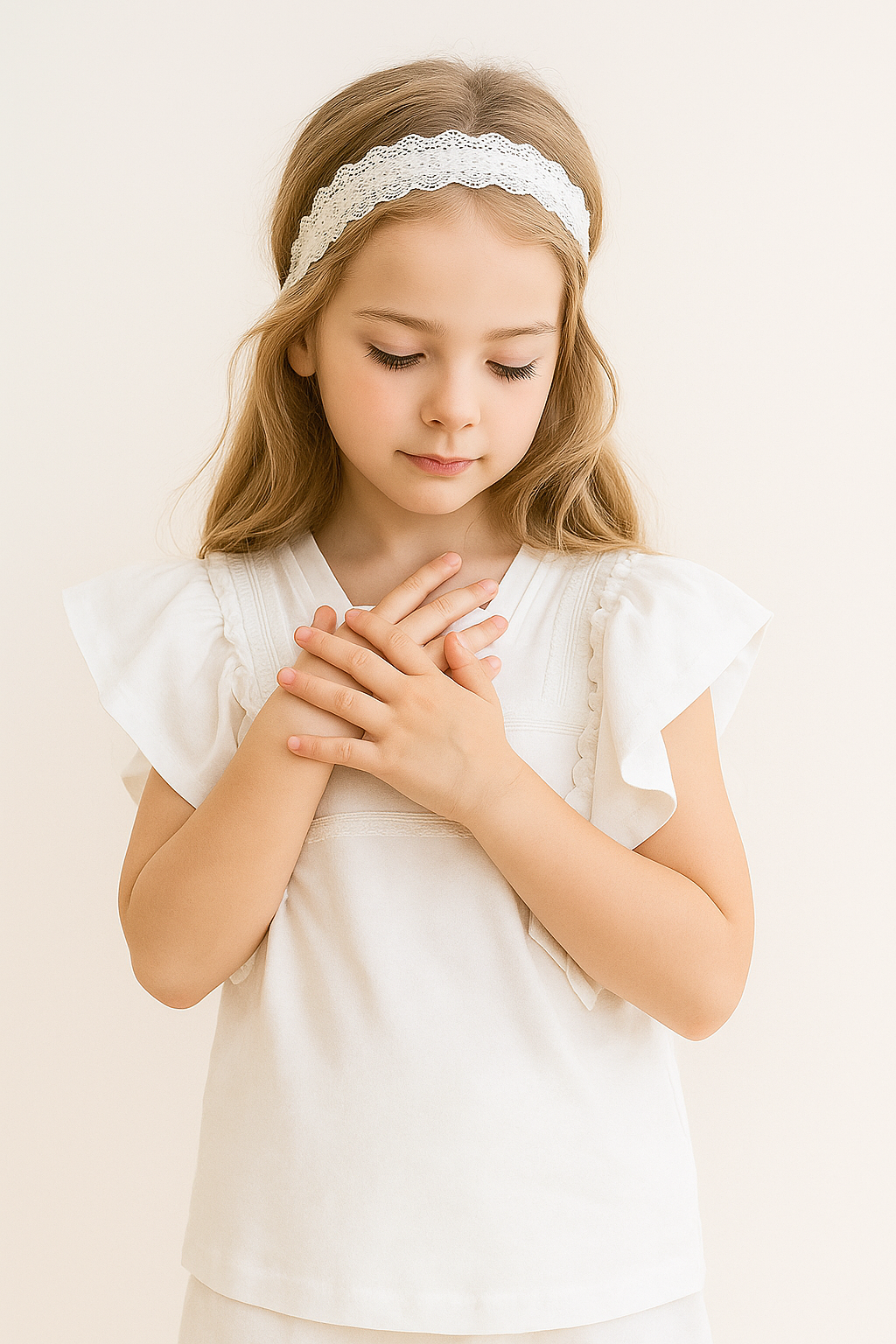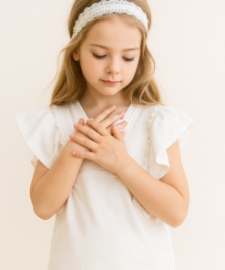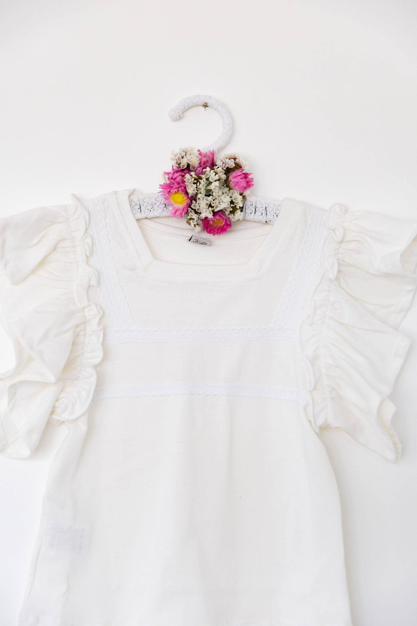 Remera infantil coquette de jersey blanca – fresca, suave y romántica
