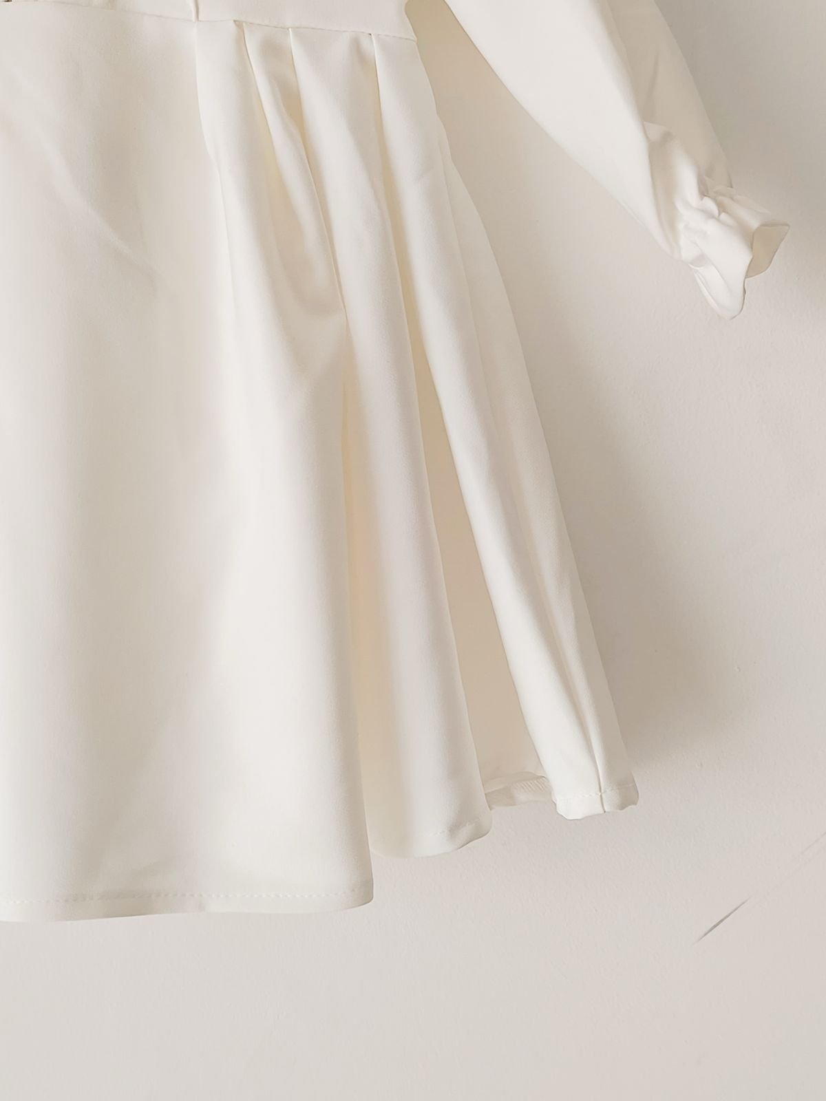 Confeccionado en katy polyester de alta calidad, suave y con caída natural, este vestido blanco ecru es perfecto para un evento especial, una ceremonia o un look de domingo.