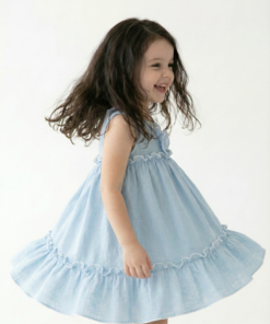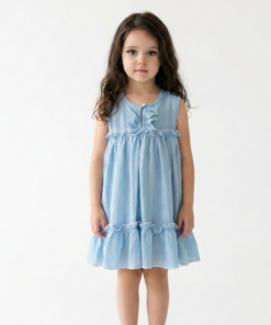 El vestido infantil simil lino celeste es una prenda delicada y fresca, pensada para que las niñas se sientan cómodas y con estilo en cualquier ocasión. Confeccionado en 70% algodón y 30% poliéster, este tejido combina la suavidad y transpirabilidad del algodón con la resistencia y practicidad del poliéster.