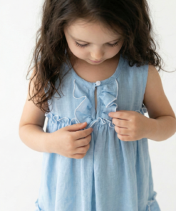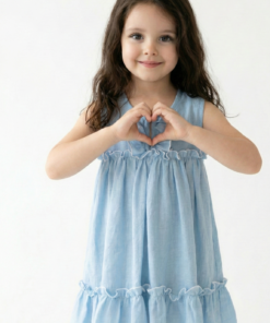 🌸 Cómo combinarlo al vestido infantil simil lino celeste
