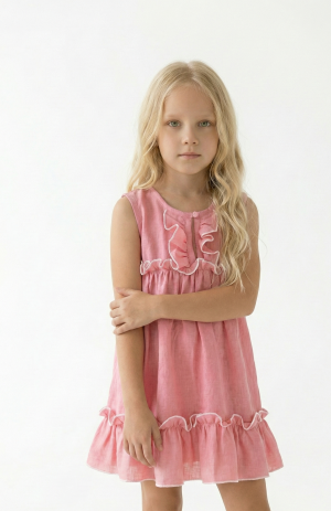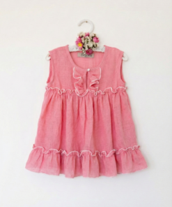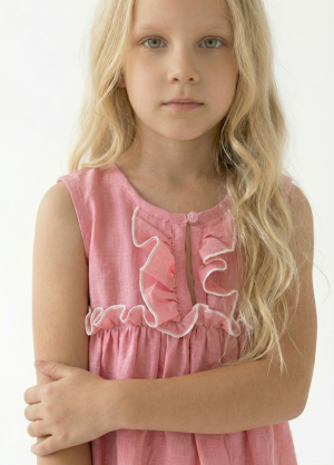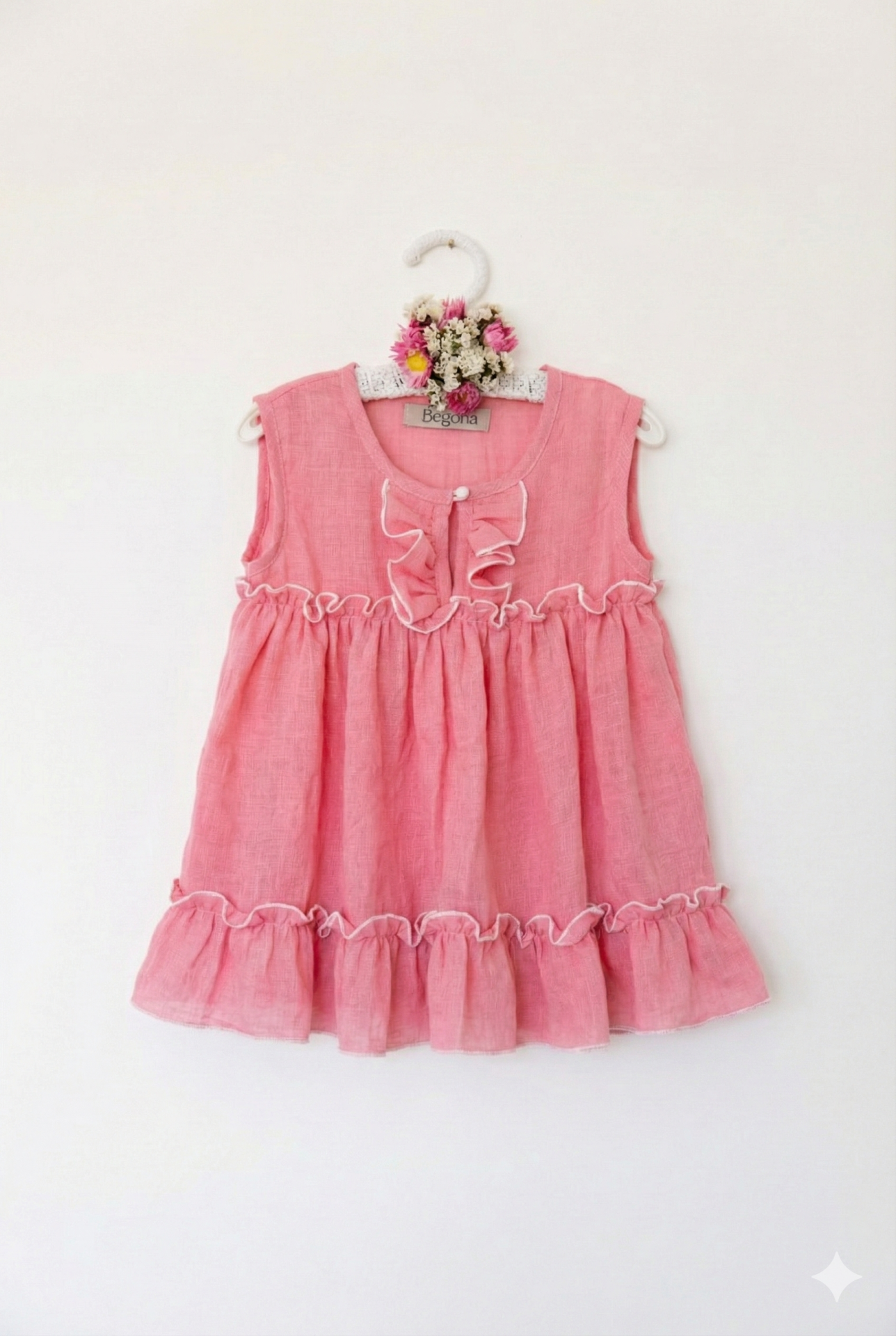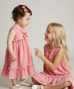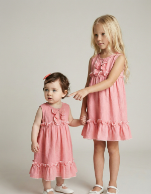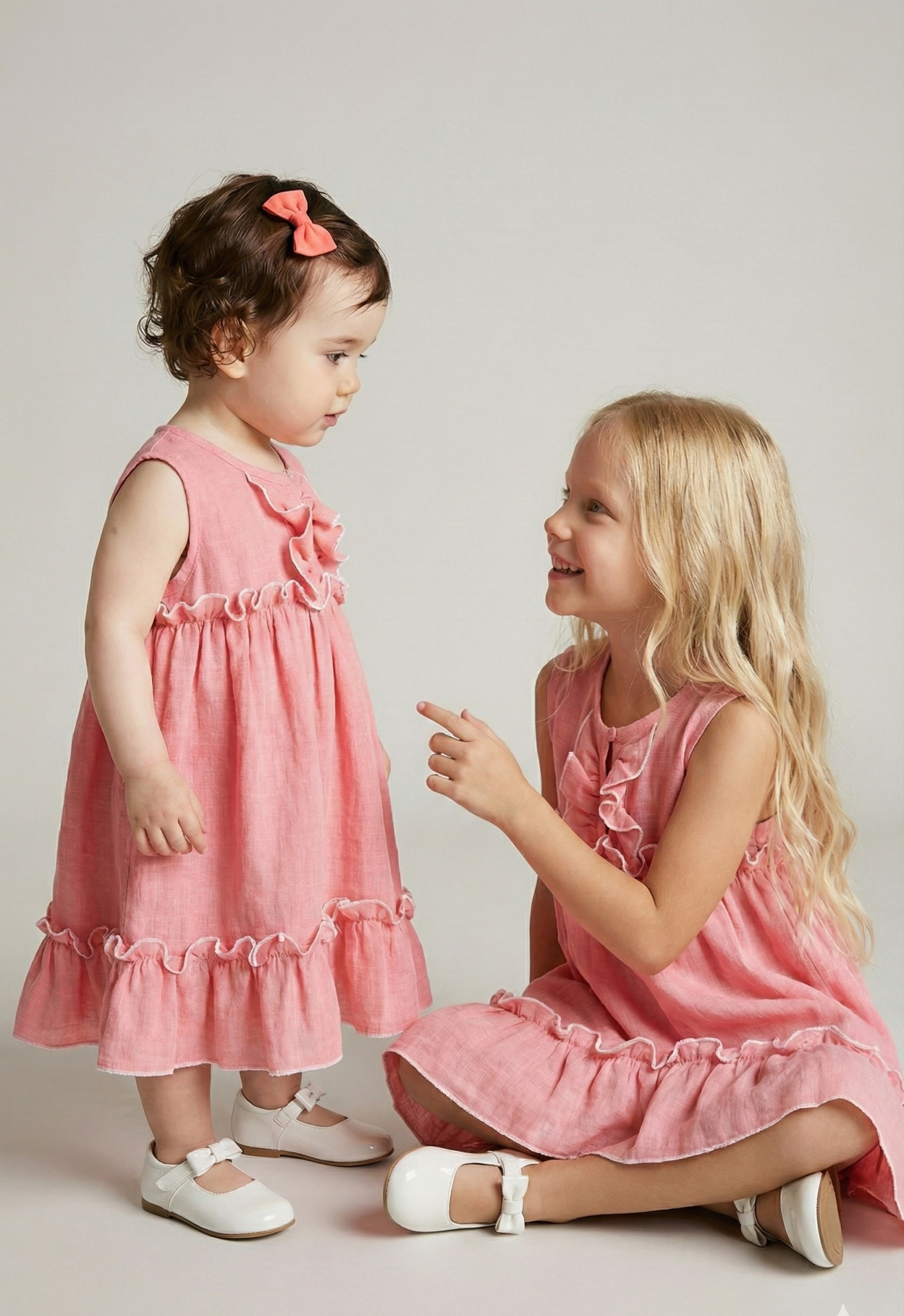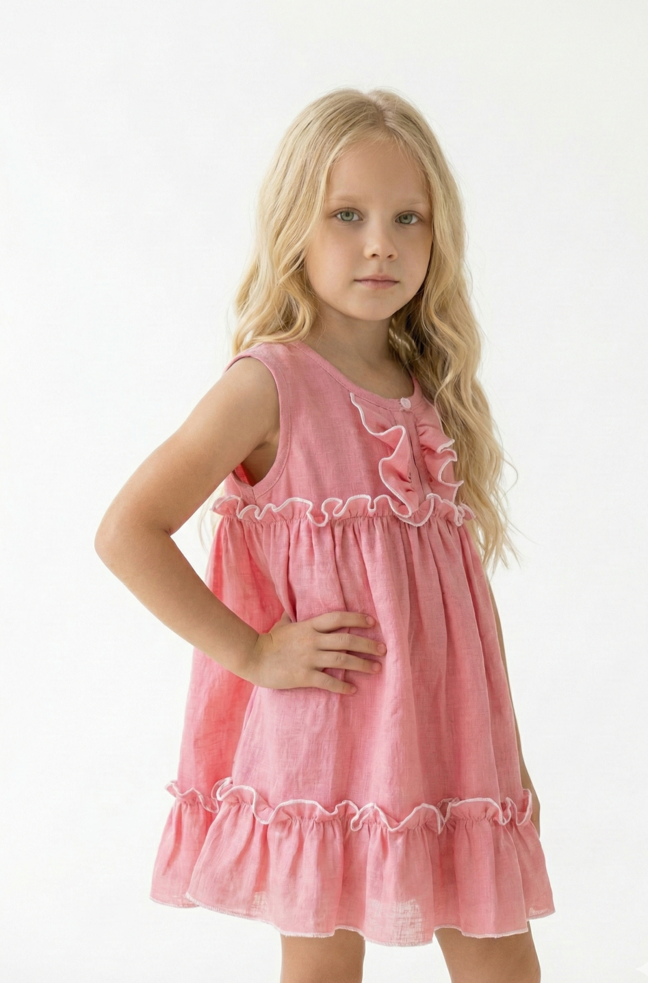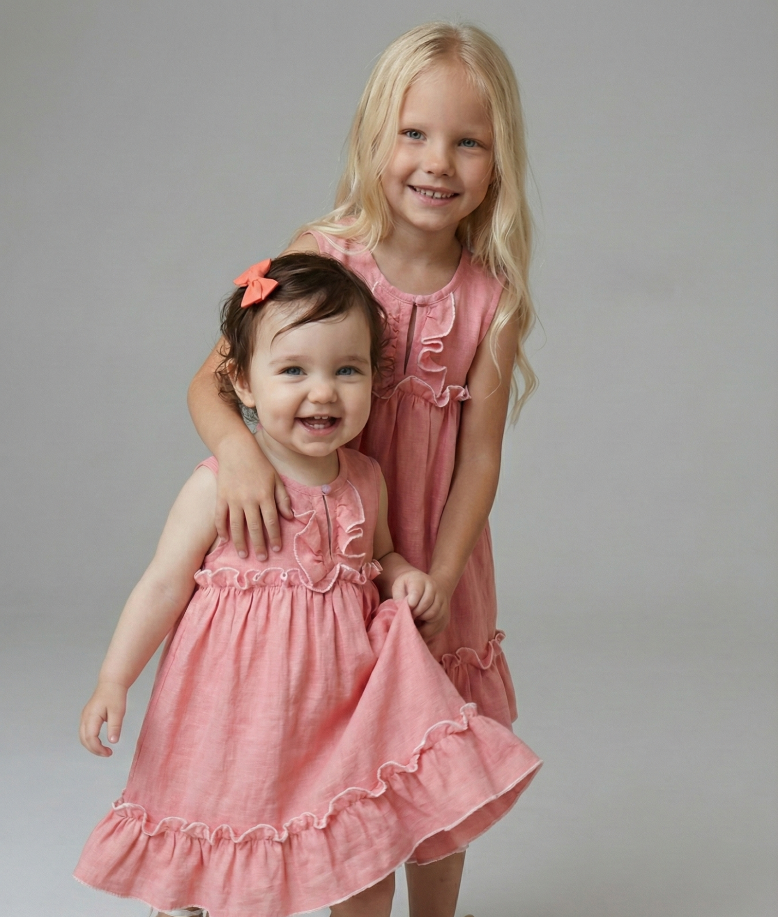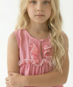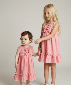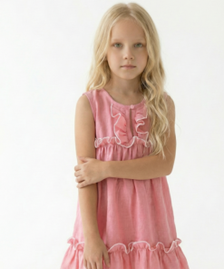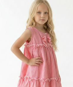 Vestido Melody infantil simil lino rosa con volados es una prenda ligera y romántica diseñada para niñas que disfrutan de la frescura y el estilo en cada detalle. Confeccionada en un tejido compuesto por 70% algodón y 30% poliéster, combina lo mejor de ambos mundos: la suavidad y transpirabilidad del algodón con la resistencia y durabilidad del poliéster. El resultado es una prenda liviana, fresca y práctica, perfecta para los días de calor.