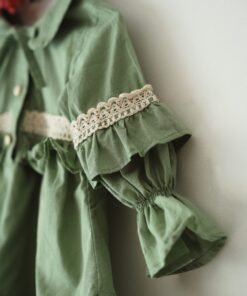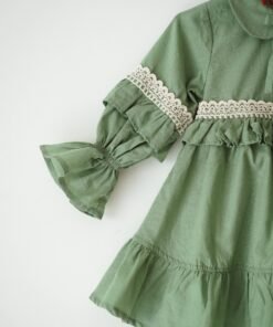 Vestido verde de voile para niñas con puntillas y mangas globo, diseño artesanal romántico
