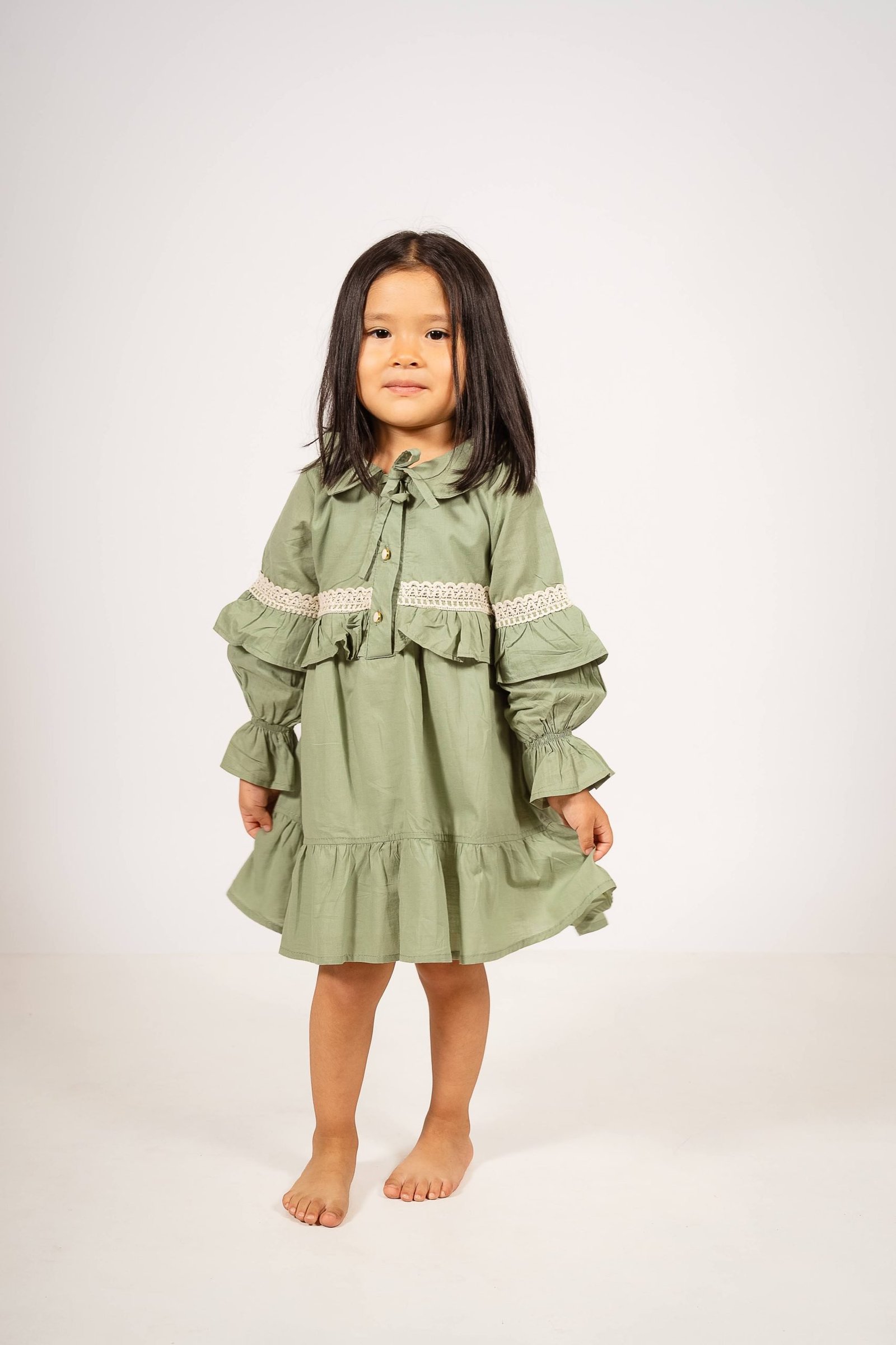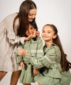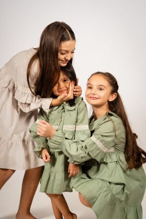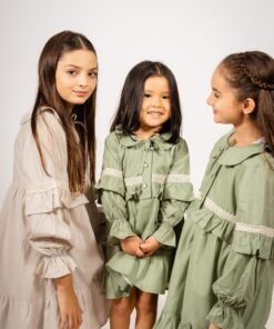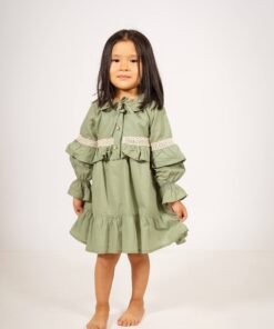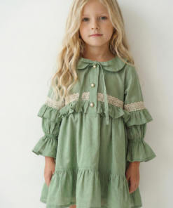 Vestido verde de voile para niñas | Diseño coquette artesanal